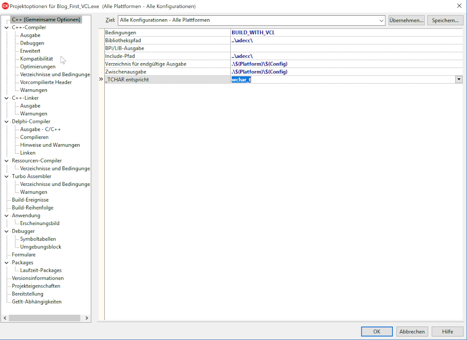 Noch müssen wir aber den bisherigen Weg gehen. Leider wird gibt es keinen Compiler- Schalter, der festlegt, welches Framework in der Projektdatei gewählt wurde. Wir haben deshalb in unseren Projekten selber Schalter definiert. Für VCL- Projekte definieren wir den Schalter BUILD_WITH_VCL, für FMX- Projekte dem Muster folgend den Schalter BUILD_WITH_FMX. Diesen benutzen wir den Projekteigenschaften.